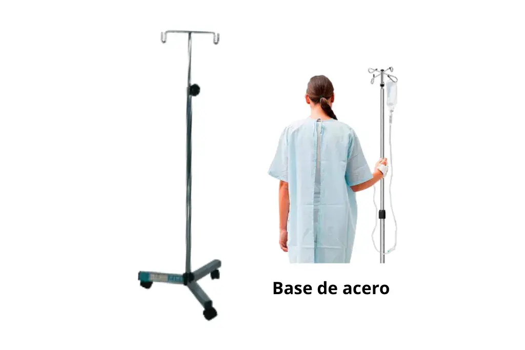 Porta suero con base de acero: más firme y resistente para uso continuo.
