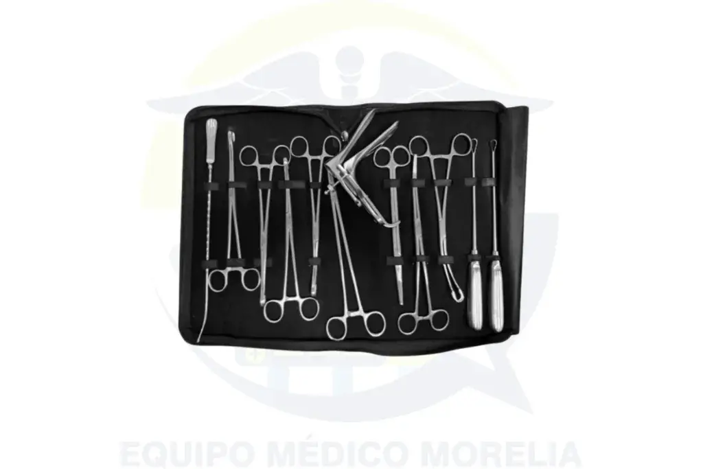 Incluye instrumentos clave como legras, histerómetro, pinzas, espejo vaginal y porta agujas para trabajar con mayor precisión y control.​